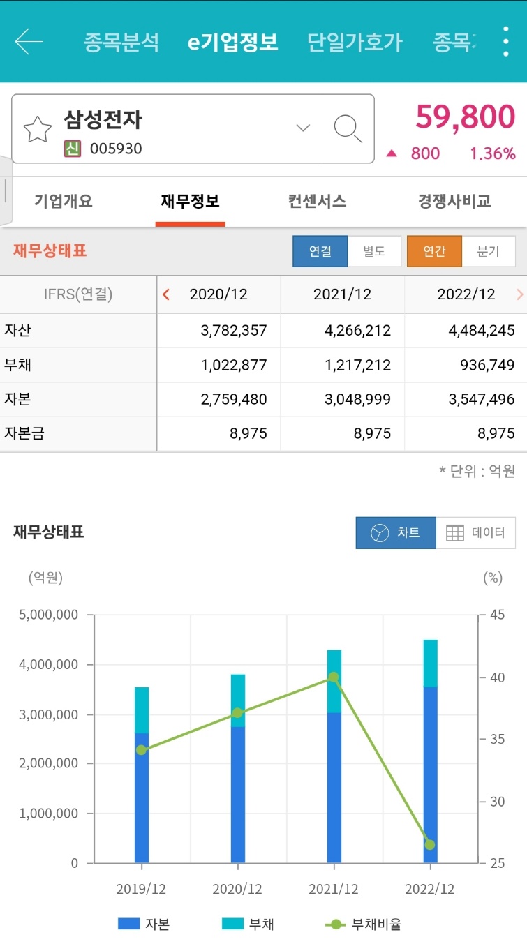 재무제표란 투자자들이 회사의 재무 건전성과 성과를 평가하는 아주 중요한 지표가 된다. 일반적으로 상장 기업은 매 분기마다 사업보고서를 발행하는데 그중 재무제표는 기업의 실적과 자산, 현금 흐름등 기업의 많은 정보를 알 수 있게 한다. 재무제표는 주로 투자자가 기업의 재무 건전성을 평가할 수 있게 하며, 정보를 종합하여 올바른 투자를 할 수 있도록 도와주는 필수적인 존재이다. 재무제표는 크게 세 가지가 주로 사용되는데 영웅문 e기업정보를 참고해서 모두들 잘 아는 삼성전자의 재무제표를 살펴보겠다.